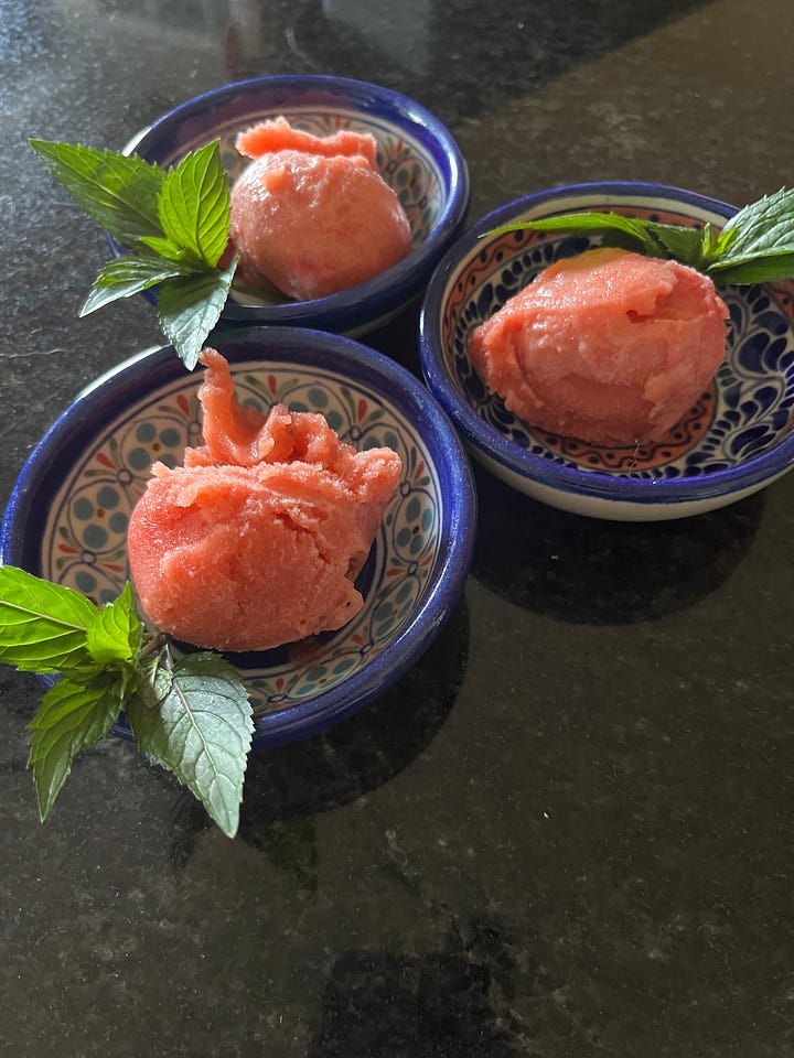 Last week, I stood around my kitchen island with my friends as we dished up the sorbet I had made with the cherries from our tree. Kristen had grabbed some mint from our garden to garnish the dishes and said, “You have to slap it to bring the oils out.” So, we slapped some mint and placed it on top of the servings of sorbet before digging into it. We talked and laughed and planned the next ice cream, the next garden project, the next gathering, the next small dream that is part of this big dream of life here together. I could easily see the beauty of that moment.